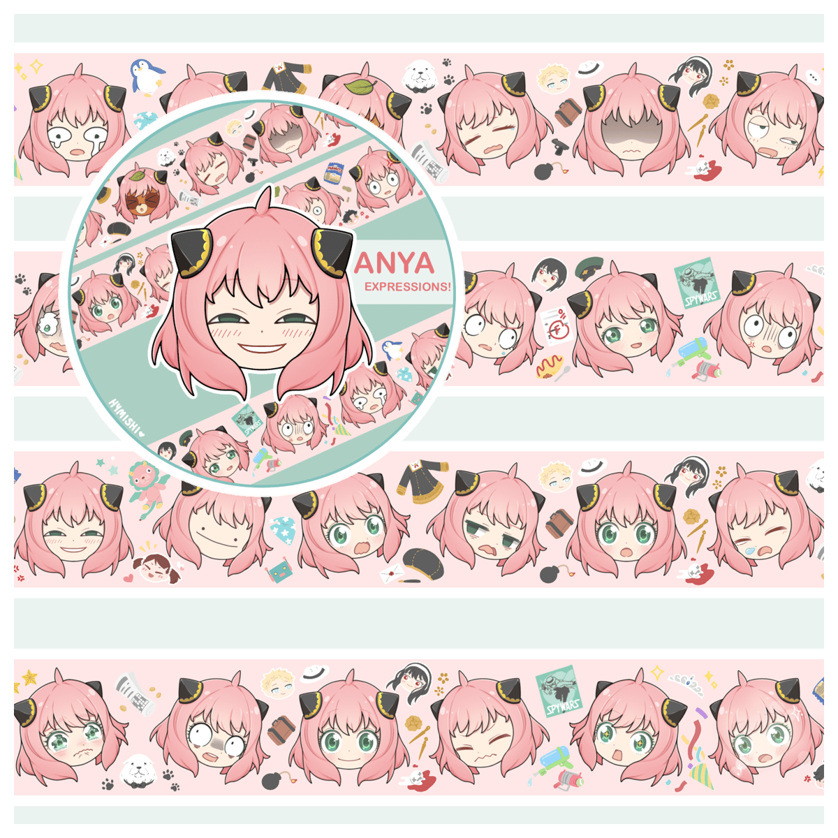 Cute Anya washi tape, can you guess how many expressions have been added to its pattern? > v> <3